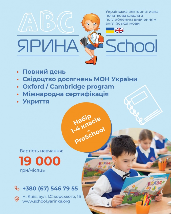 "ЯРИНА School" розпочинає набір учнів 1-4 класів + Preschool на 2026-2027 навчальний рік!