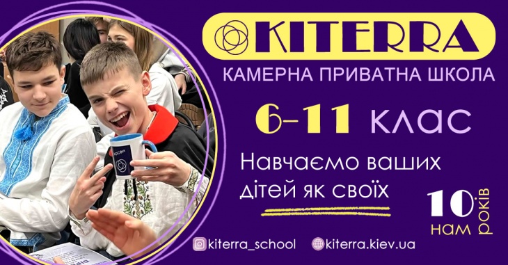 КІТЕРРА - це камерний ліцей з високими академічними стандартами. Десять років тому школу заснували батьки для своїх дітей і вийшло так файно, що продовжуємо вже для ваших.