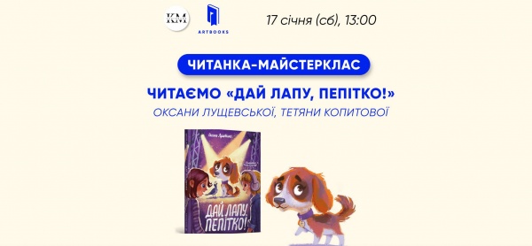 17 січня (субота) о 13:00 разом з Книгомамами познайомимося з книжкою «Дай лапу, Пепітко!» Оксани Лущевської та Тетяни Копитової.