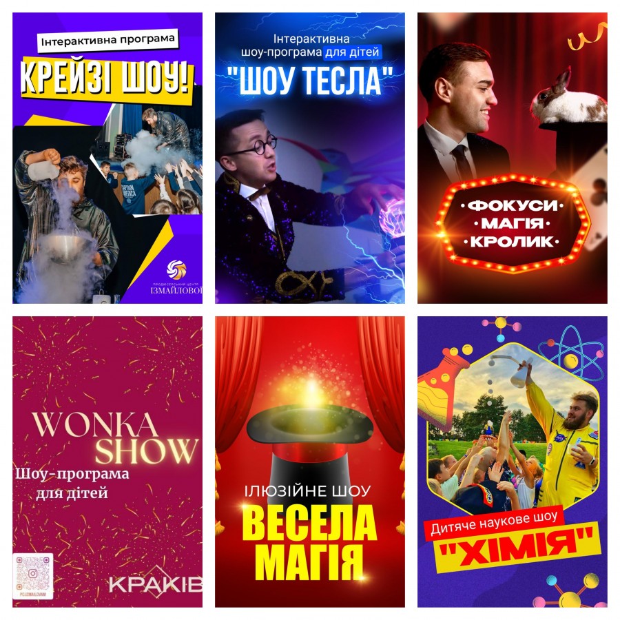 Яскраві інтерактивні шоу-програми для дітей від 3,5 до 11 років