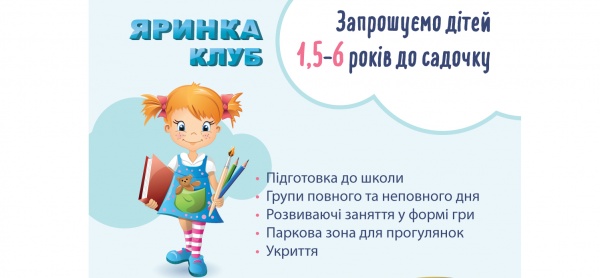 Запрошуємо дітей 1,5–6 років до садочку ЯРИНКА Клуб!