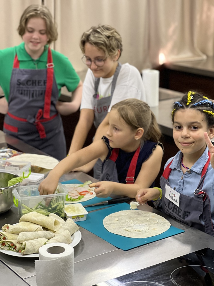 Кожного дня, під керівництвом шеф-кухаря, діти готують сніданки, обіди, полуденки.