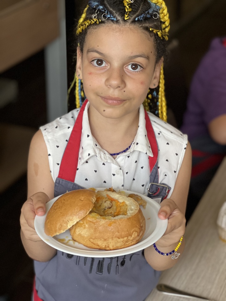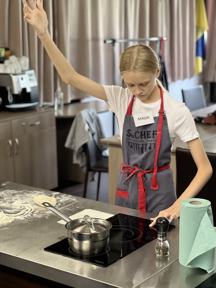 Окрім цього, навчаємо дітей організації робочого простору на кухні, правилам санітарії, зберігання продуктів, проводимо кулінарні лекторії, граємо в настільні ігри, організовуємо перегляд тематичних фільмів або програм.