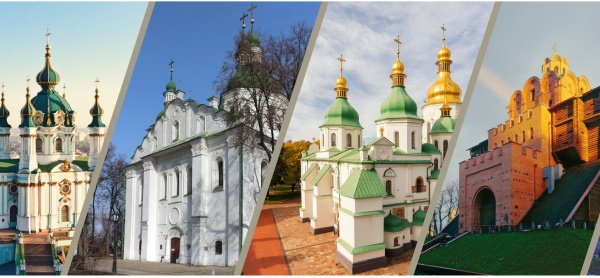 У Києві: собор Святої Софії ХI ст. та архітектурний ансамбль монастирських споруд ХVIII ст. на його подвір'ї; Золоті ворота ХI ст.; Кирилівська церква ХII ст., Андріївська церква ХVIII ст.