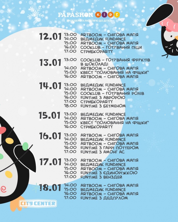Безкоштовні артпрограми у PAPASHON Kids на 12–18 січня.