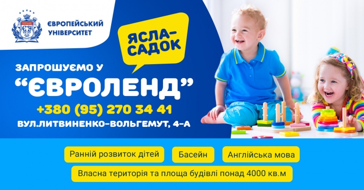 Гостинно запрошуємо ваших малюків до дитячого садочку «Євроленд» - сучасного закладу для сімей, що дбають про майбутнє!