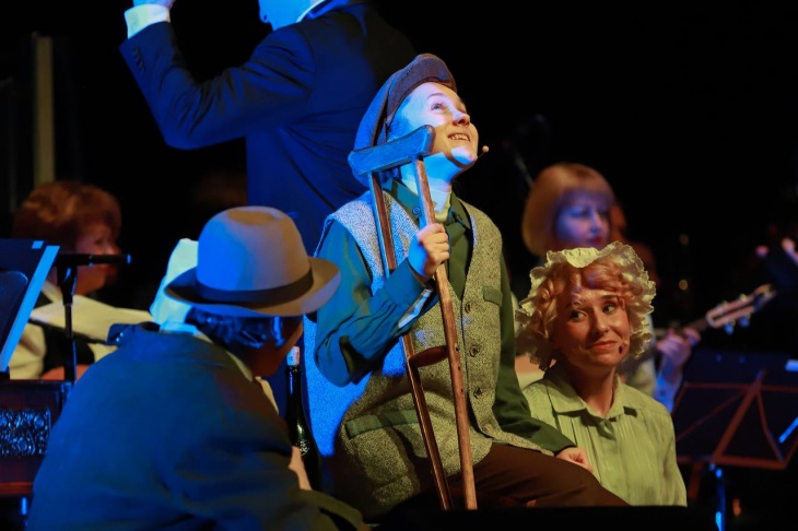 4. Створення масштабного різдвяного світу на сцені. Світлові рішення, великий живий оркестр, динамічна сценографія, велика кількість персонажів — усе це вибудовано так, щоб зал буквально «проживав» Різдво разом із героями.