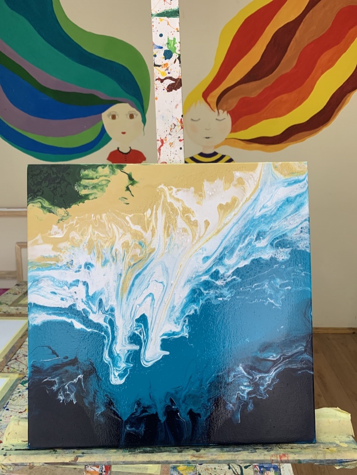 Fluid Art (Флюїд Арт) - це новий напрямок в абстрактному живописі. Для створення картини не потрібно володіти особливими навичками малювання. Процес нанесення фарб схожий з медитацією. З кожним рухом на полотні залишаються дивовижні візерунки, барвисті плями, витончені лінії і хитромудрі форми.