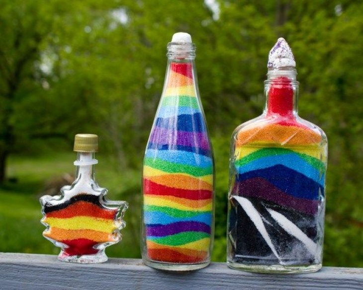 Останнім часом вважається модним використання в декорі інтер'єру різноманітних пляшок і баночок з різними наповненням: кольоровим піском, крупою, зерном, бісером, скляними кульками і т.д. Щодо кольорового піску, то майстри вміють робити з нього в пляшці цілі картини.