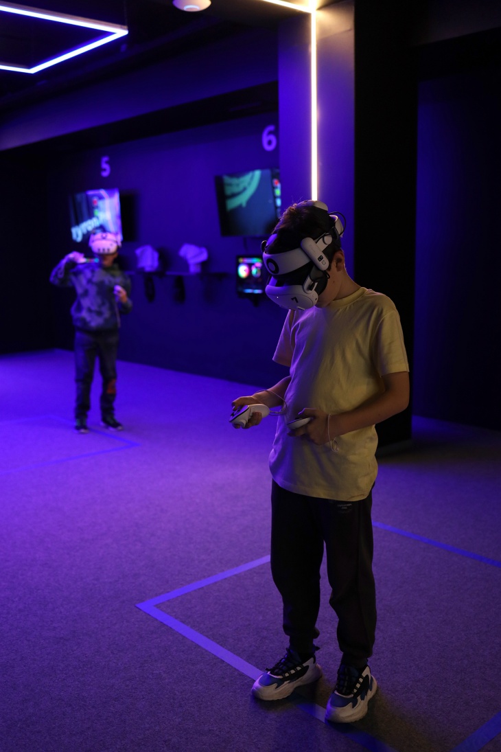 Діти вільно бігають, ховаються, взаємодіють у віртуальному світі. Грають команда на команду до 8 гравців одночасно в улюблені шутери. Розвиває спритність, координацію, командну роботу. Безпечні умови під наглядом інструктора.