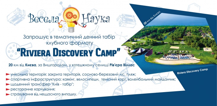 Тематичний табір Riviera Discovery Camp в унікальному еко-середовищі котеджного селища Riviera Villas Club, що створює атмосферу всебічного занурення в певну область життя людини.